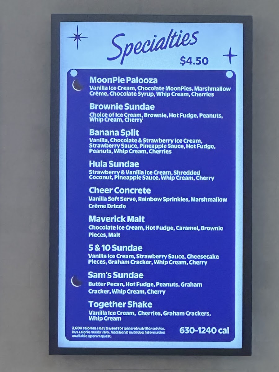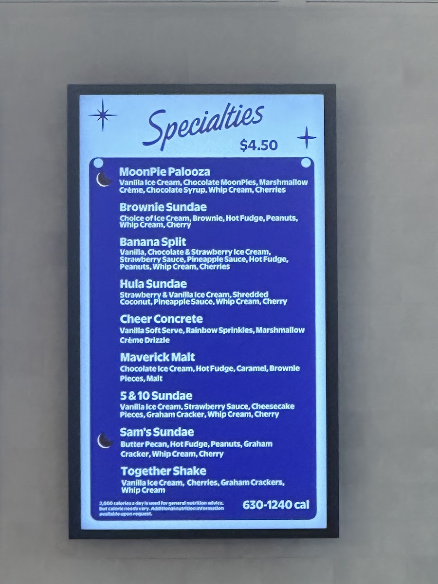 Available specialties like the Brownie Sundae or Banana Split exemplify the playful yet familiar atmosphere, while house blends such as the French Vanilla Iced Coffee complement the creamy sweetness perfectly. Whether you’re stopping by for a quick malt or settling in with a float and a sweet topping like caramel or strawberry sauce, the menu suits relaxed visits, family outings, and nostalgic moments alike.